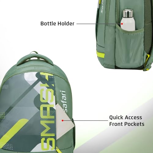 Safari Duplex1 32L School Bag for Boys & Girls, Casual 2 Compartment School Backpack, Printed Backpack with Armor Base, Bottle Holder Pocket & Front Pocket, Travel Bag for Men and Women, Color Sage