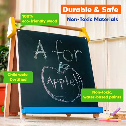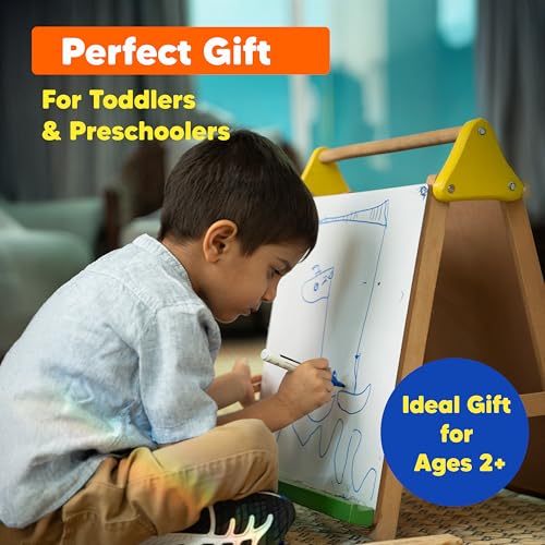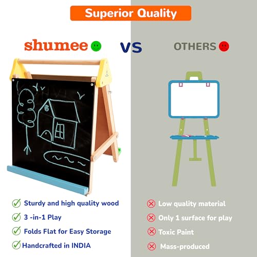 Shumee Wooden 3-in-1 Double Sided Table Top Easel(2 Years+) – Black Board, White Board, 25 Big White Sheets to Write, Draw & Paint