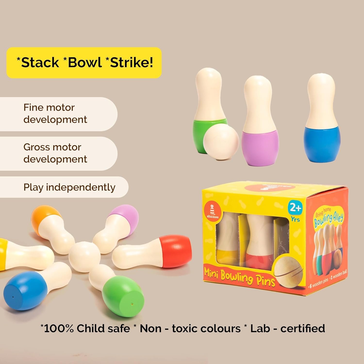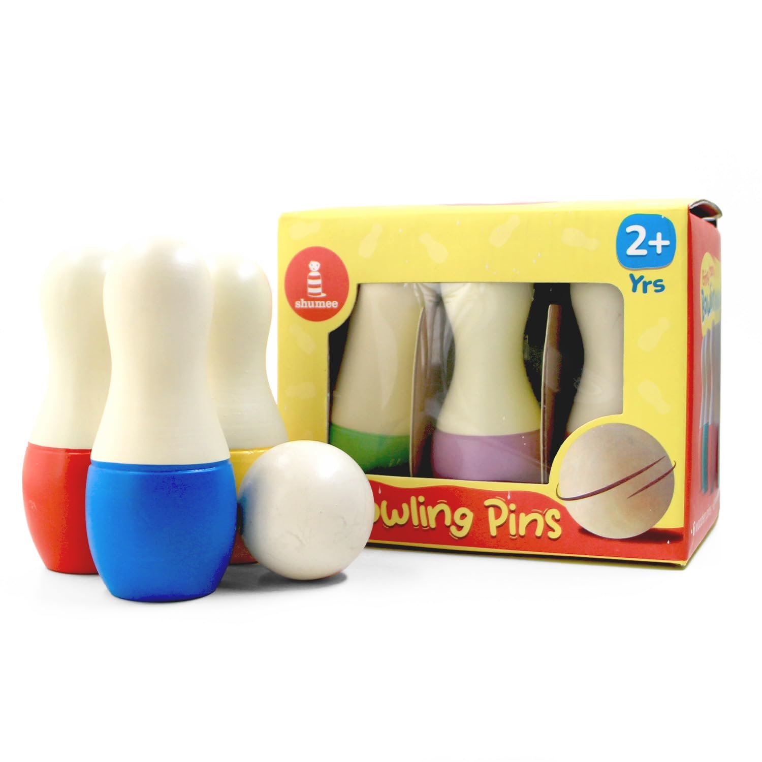 shumee Wooden Bowling Set for Ages 2+ with 6 Pins & 1 Ball | Coordination & Fine Motor Skill Toys for Kids | Activity Toys for 2-5 Years Old | Durable & Lightweight | Ideal Gift