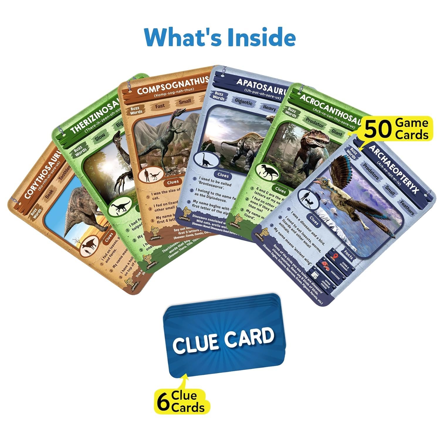 ULTIMATE GUESSING GAME: Divide yourselves up in teams, or play one on one, and ask up to 10 questions to guess the dinosaur on the Game Card! Did he have a crest on his head? Did this dinosaur feed on plants? Did this dinosaur belong to the Triassic Period? Think hard, ask intelligent questions be the first player to win 7 game cards!