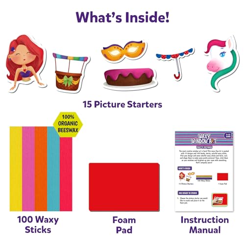 - INCLUDES: 100 Waxy Sticks (100% Organic Beeswax), 15 Picture Starters, 1 Foam Pad, and an Instruction Manual.