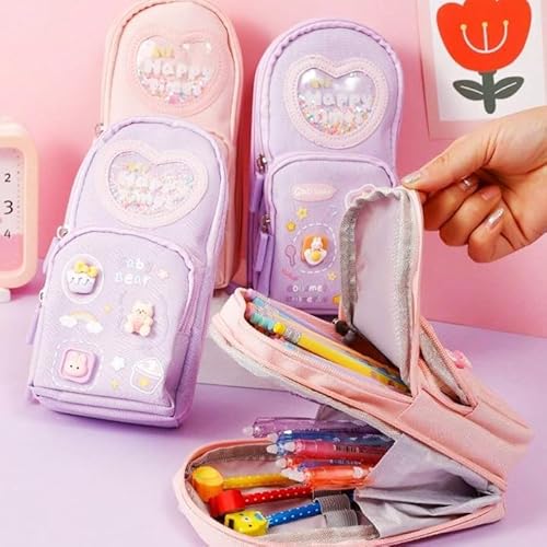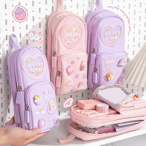 Sky Tech Tech Pencil Case For Girls 3 Compartment Cute Aesthetic Canvas Pencil Case Large Capacity Pen Pencil Pouch Multifunctional Pouch For School Kids College Students For Children, lavender