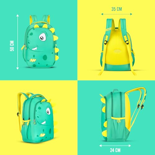 Skybags Buddy 02 Dino Yellow & Green 3 Compartment School Backpack