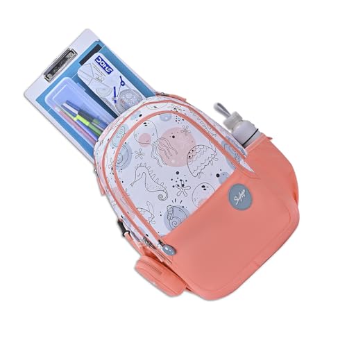 Skybags Charm 02 37 Liters Premium Polyester Fabric School Backpack for Kids with Multiple Compartments and Adujtable Starp – Girls (Coral)