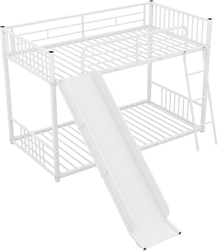 Smake mart Metal Bunk Bed Frame for Kids | Twin Over Twin Metal Bunk Bed with Slide for Bedroom Living Room Home (White)