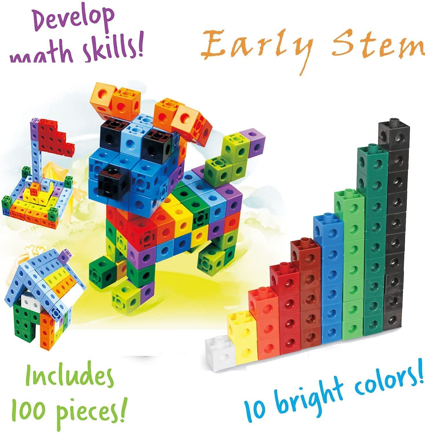 Watch as your youngster learns the art of pattern making or how to apply colors to learn math concepts, such as addition and subtraction, with this set of 100 construction cubes