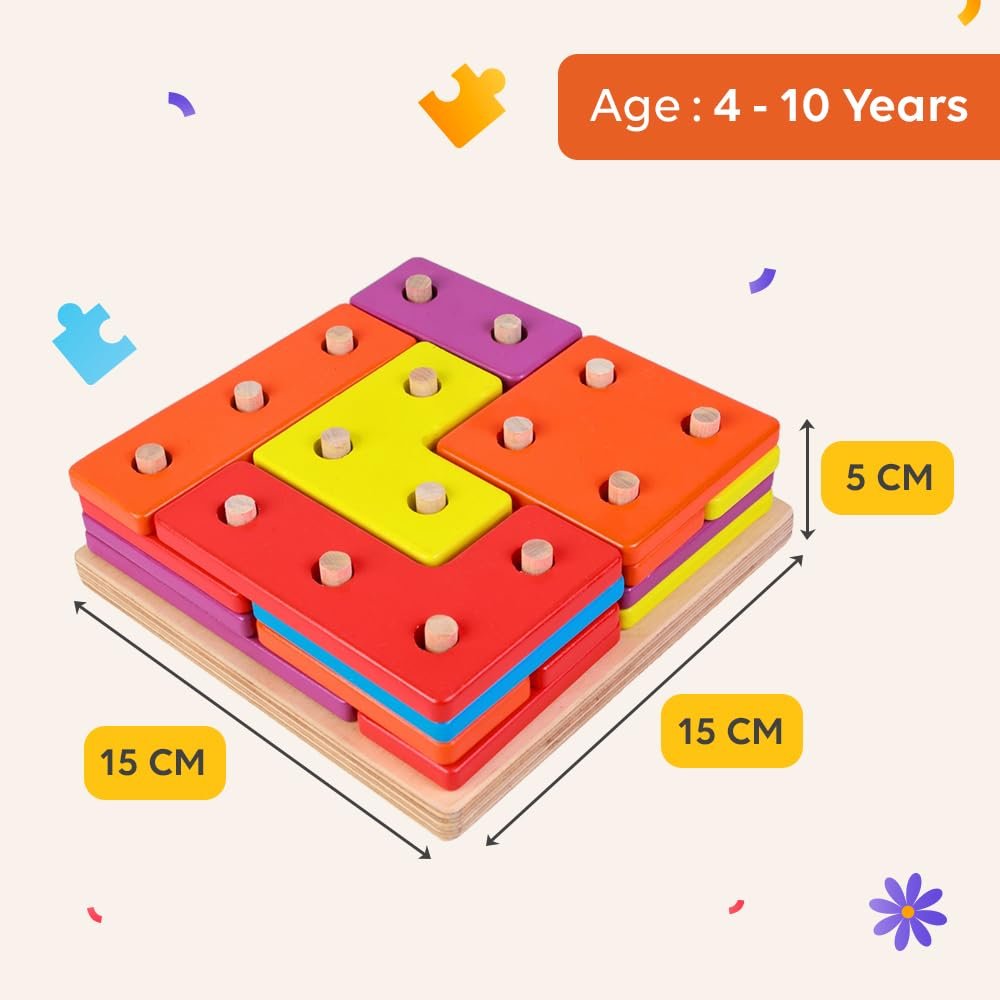 SMARTBEE Wooden Shape Sorter and Stacking Toy | Montessori Toys for Kids with 5 Geometric Shapes | Wooden Intelligence Puzzle for Kids and Toddlers for Age 1 to 3