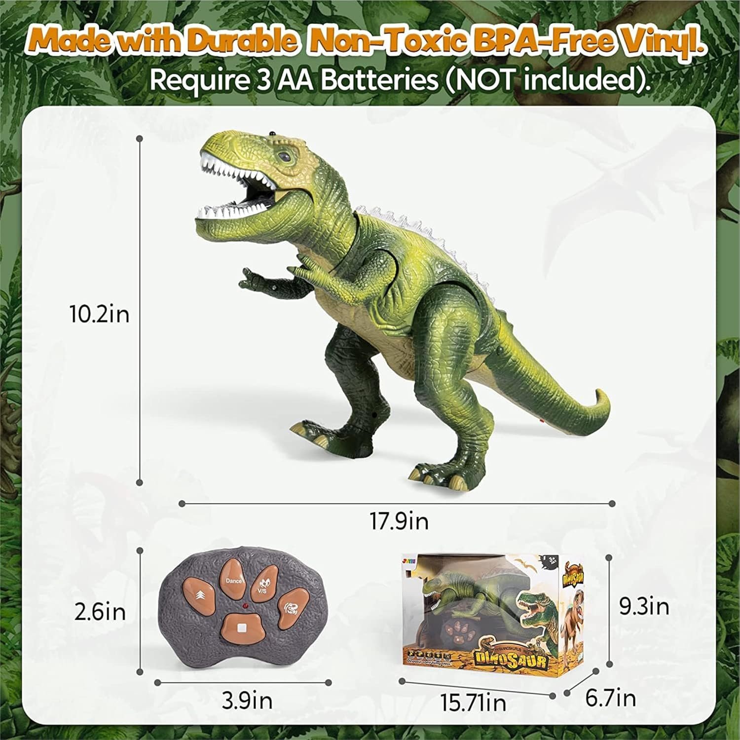 Create memorable time with family playing with remote control dinosaur toys for kids with boys and girls -: Boys and girls will be excited about the remote control dinosaur toys when a velociraptor is running indoor and outdoor. All parts are friendly and safe. Kids especially boys love our dinosaur toys to play with. This dinosaur toy is a magic among kids. They are a perfect pretend toys for boys and girls.These dinosaur toys do NOT HAVE BATTERY INCLUDED.