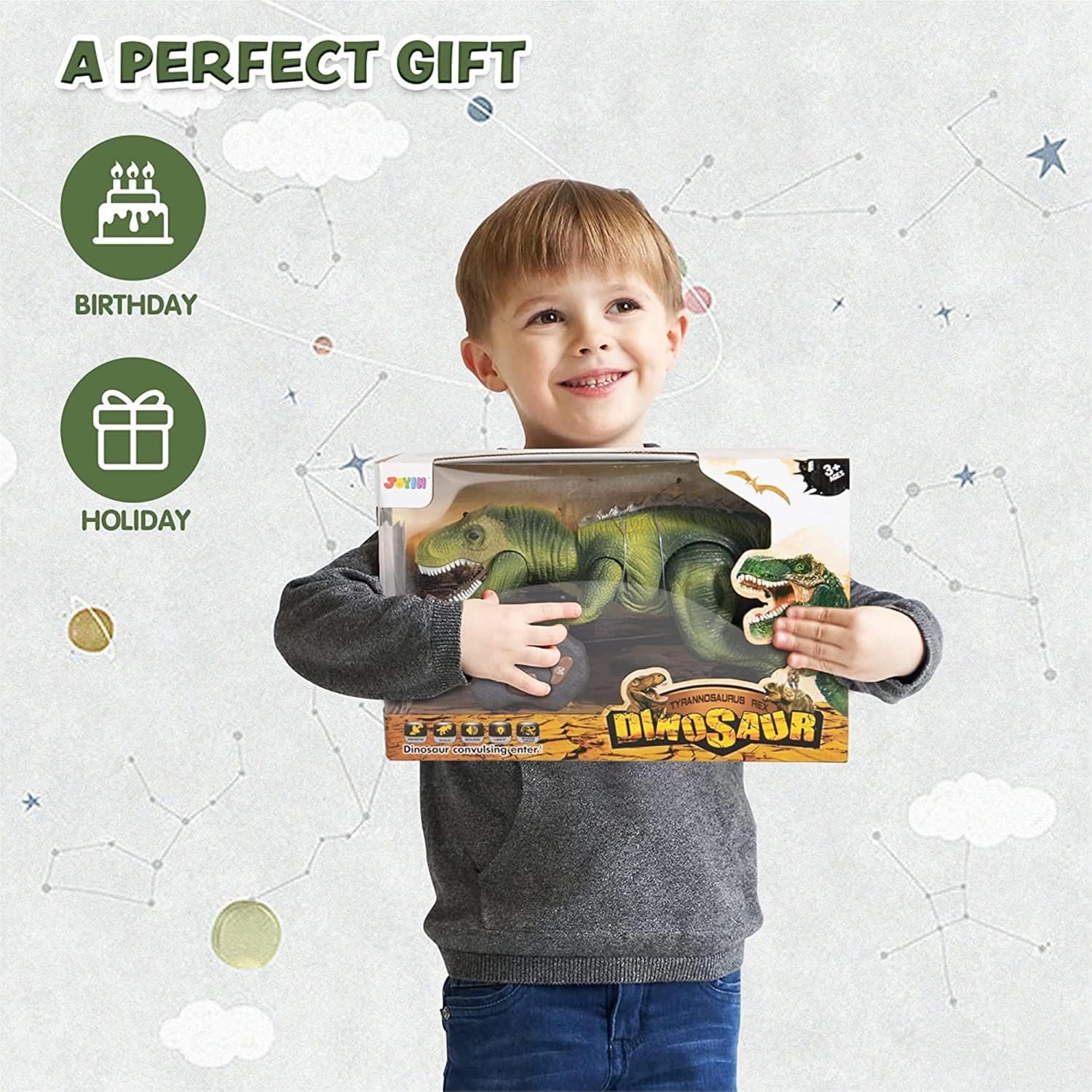 Boys Girls absolute Favorite remote control Dinosaur Toys: This dinosaur toy is Walking and roaring with remote control. The realistic and electric dinosaur toy add more fun & interactive in play than still models. Its a great pretend play toy for boys or girls. This dinosaur toys will run around the room, spin, dance, growl, and stand out in your kids\’ dinosaur world. This dinosaur toys is very easy to operate.