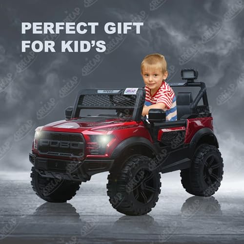 Srecap Poboco Rechargeable Battery Operated Jeep for Kids, Ride on Toy Kids Car with Light & Music | Electric Jeep Battery Car | Baby Big Car for Kids to Drive 2 to 7 Years Boys Girls (Red)