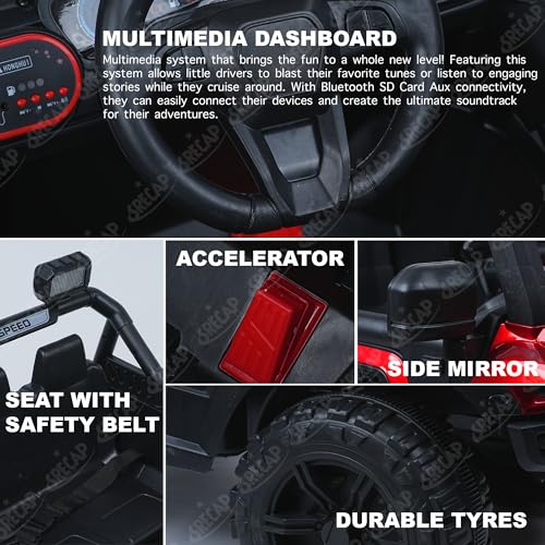 - [Durable and Comfortable Design] ?: Built to last and provide maximum comfort, our Ride on Kids Car boasts two wear-resistant seats and four wheels for a smooth ride. Rest assured, this sturdy construction ensures long-lasting enjoyment for your little ones.