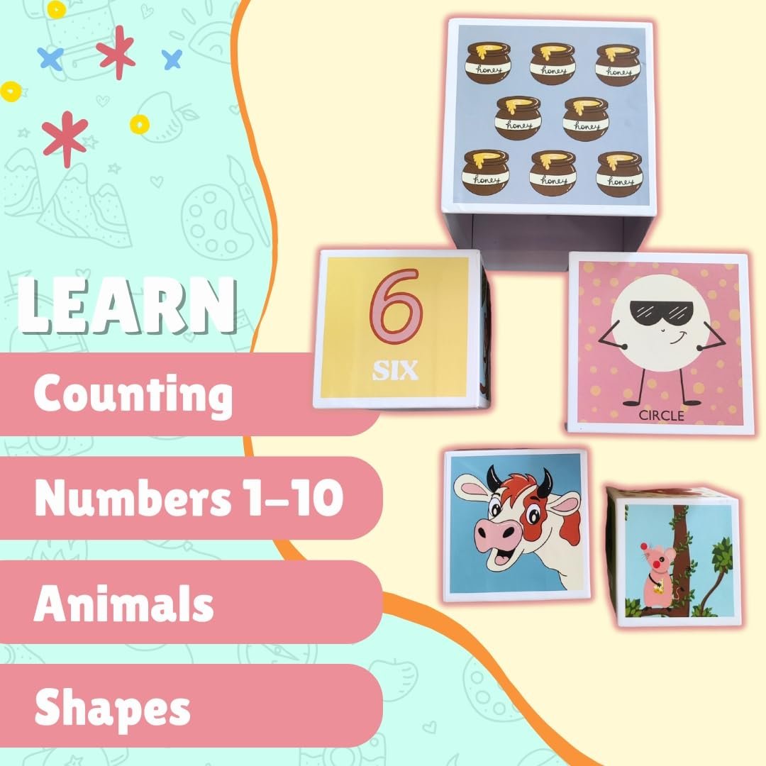Comprehensive Learning Activity: With a diverse range of educational elements, these cubes offer a well-rounded learning experience. Your child will be exposed to animals, shapes, numbers, colors, and counting, laying the foundation for essential cognitive skills.