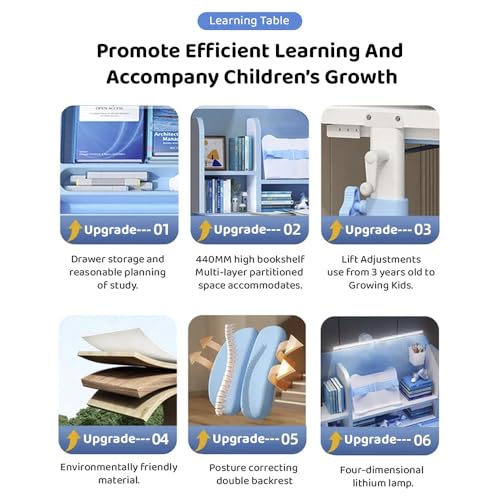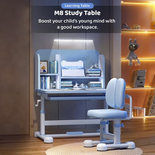 StarAndDaisy MDF Board, ABS Plastic Adjustable Height, Multi-Functional Kids Study Table with Book Holder, Drawer, Extra Large Desktop with Book Shelf & Ergonomic Chair- (Blue)