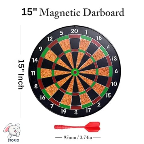 Storio Premium Magnetic Dart Board with 4 Darts – Fun Indoor and Outdoor Dart Game Set Toys for All Ages Kids, Boys and Girls – 15 Inch