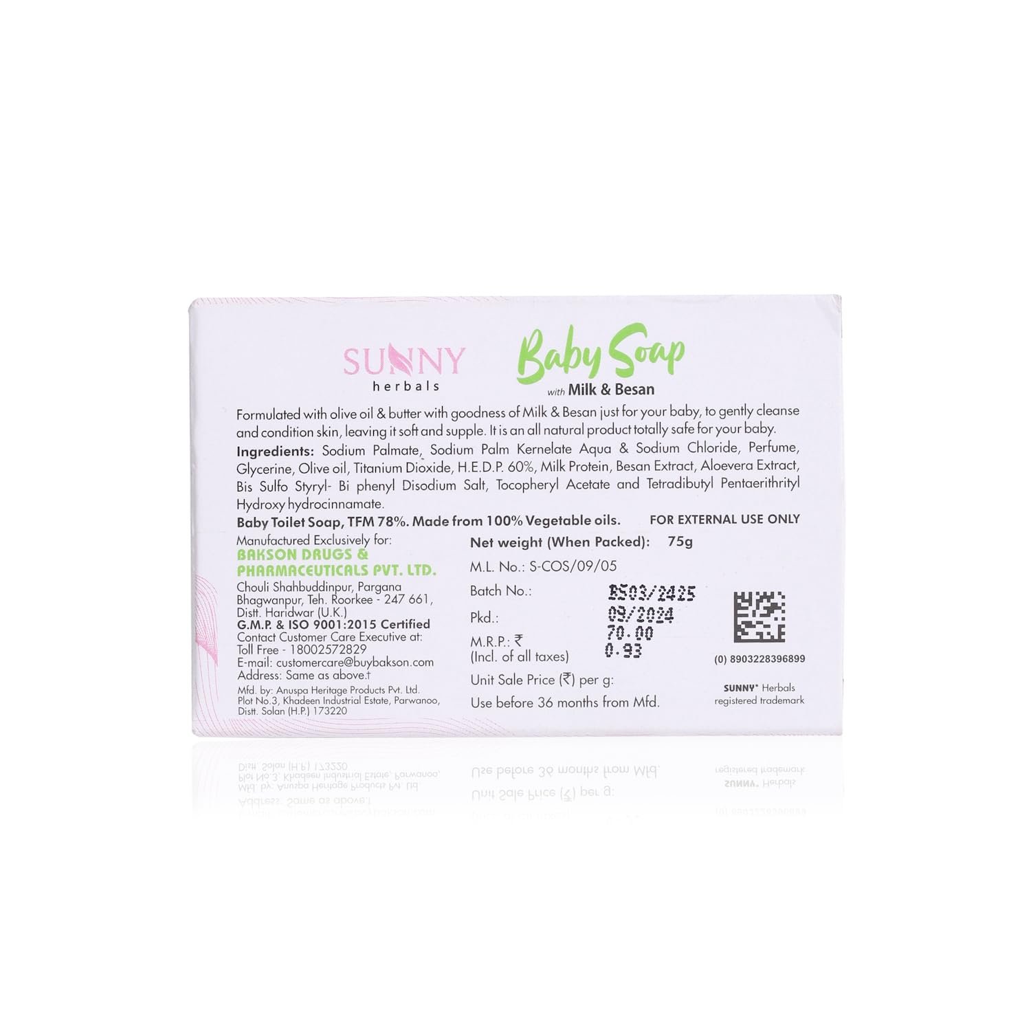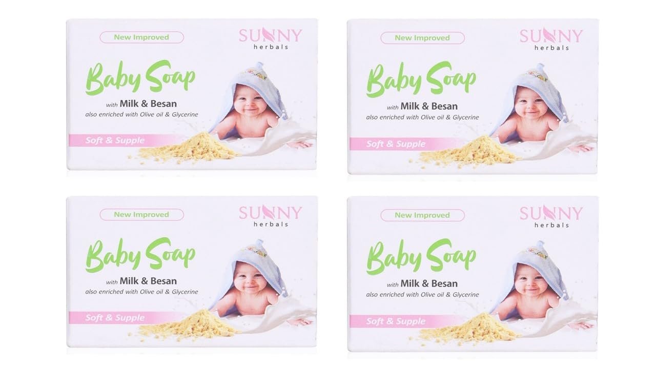 Sunny Herbals Baby Care Soap for Soft & Gentle Baby Skin | With Milk & Besan | Enriched With Olive Oil & Glycerine, 75 gm (Pack of 4)