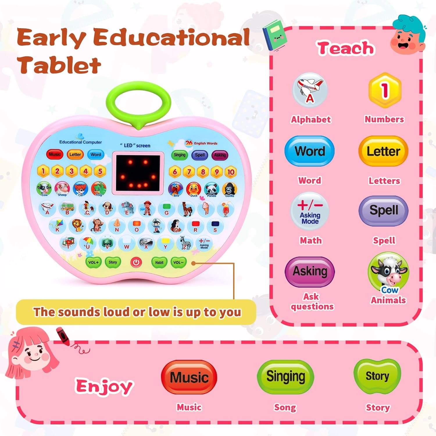 SUPER TOY Alphabet Number Learning Electronic Tablet LED Display Musical Laptop Toy for Toddlers Age 2-5 Years Boys Girls Birthday Gift