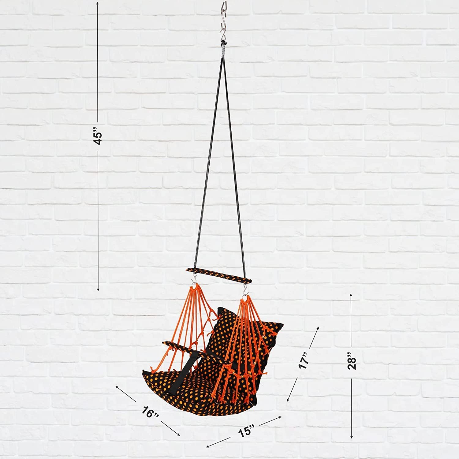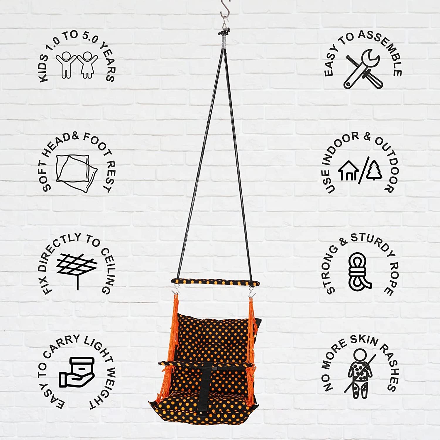 Swing For Kids Cotton Baby Swing Chair For Kids Baby\’S Children Folding And Washable 1-5 Years With Safety Belt/Home, Garden Jhula For Babies | Cradle | (A. Orange Dott), 35 centimeters