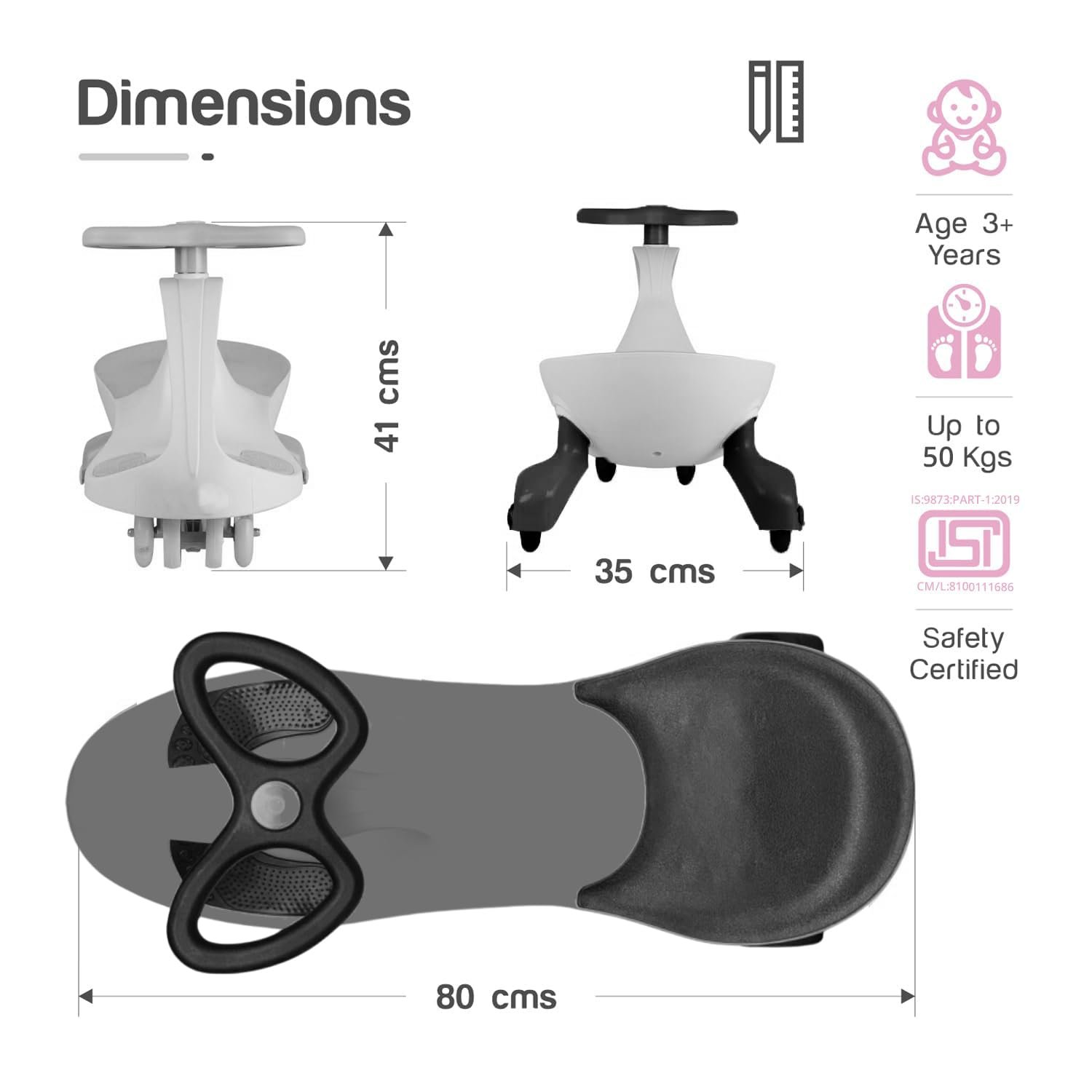 Swinging Nord Magic Swing Car for Kids 3-8 Years, Twister Ride on Toy With PU Wheels | Push Ride on Baby Car | Magic Car for Boys Girls | Presents for Children