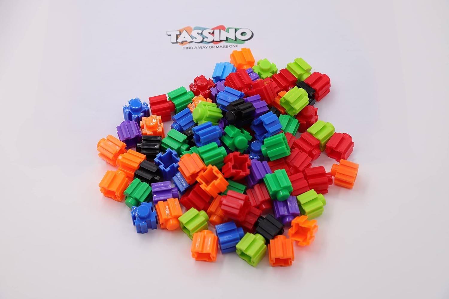 【180+ Pieces PACK】Tassino DIY Building Blocks Set contains about 180 ps bricks with 8 different colors, colors are blue,yellow, red, orange, purple, gray,green and dark blue. There are about 210 small dirmoned shaped bricks(2*2cm).