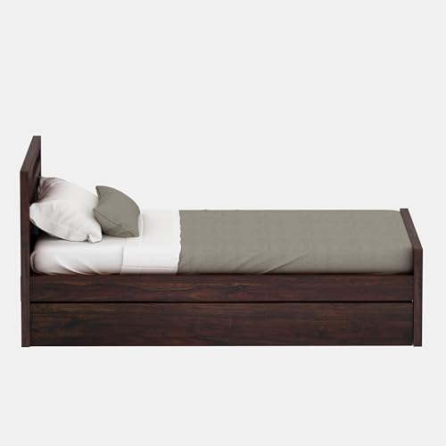 TG Furniture Sheesham Wood Single Size Bed with Trundle Wooden Bed Furniture for Living Room Home (Walnut Finish)