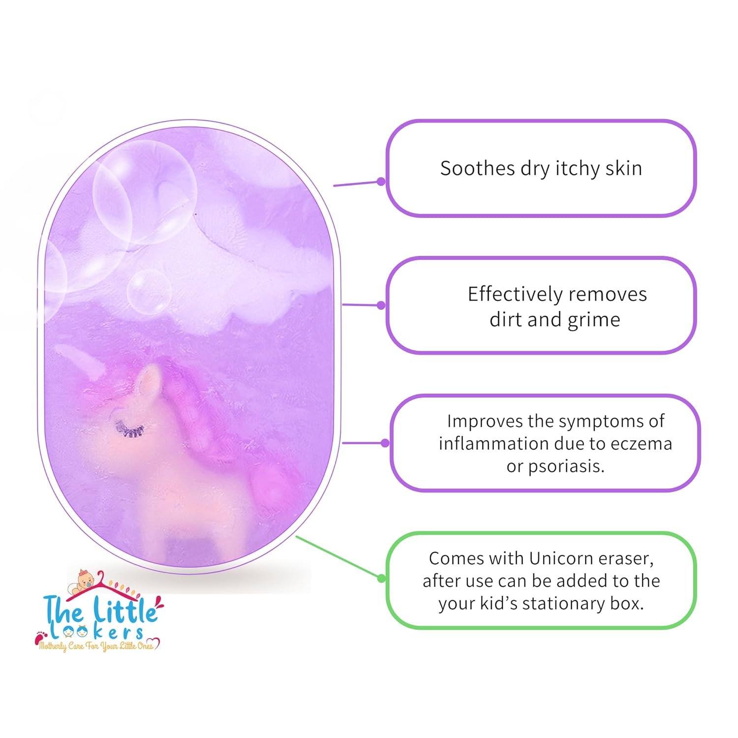 The Little Lookers Soap with Unicorn Eraser| Handmade/Handcrafted & Hand cut| Kids friendly Organic Soap for All skin with moon and star details (120 gms approx.)(Unicorn, Pack Of 1)