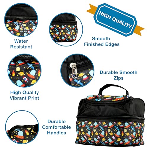 - STYLISH & MULTI-PURPOSE FOR SCHOOL & TRAVEL – With a fun Space print, this lunch bag for kids girls school and boys is great for school, picnics, and travel. Whether you need a kids lunch bag for school or an everyday meal carrier, this lunch bags for kids boys and girls is both stylish and practical.