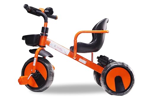 Tiny Riders Kids Tricycle for 2 to 5 Years | Baby Cycle with Backrest, Safety Bar, Water Bottle & Bell | Sturdy Steel Frame, EVA Wheels | Push Ride-on Toy for Toddlers (Orange)