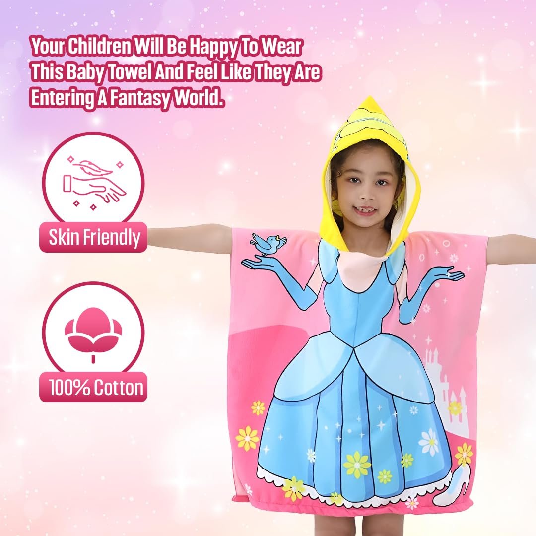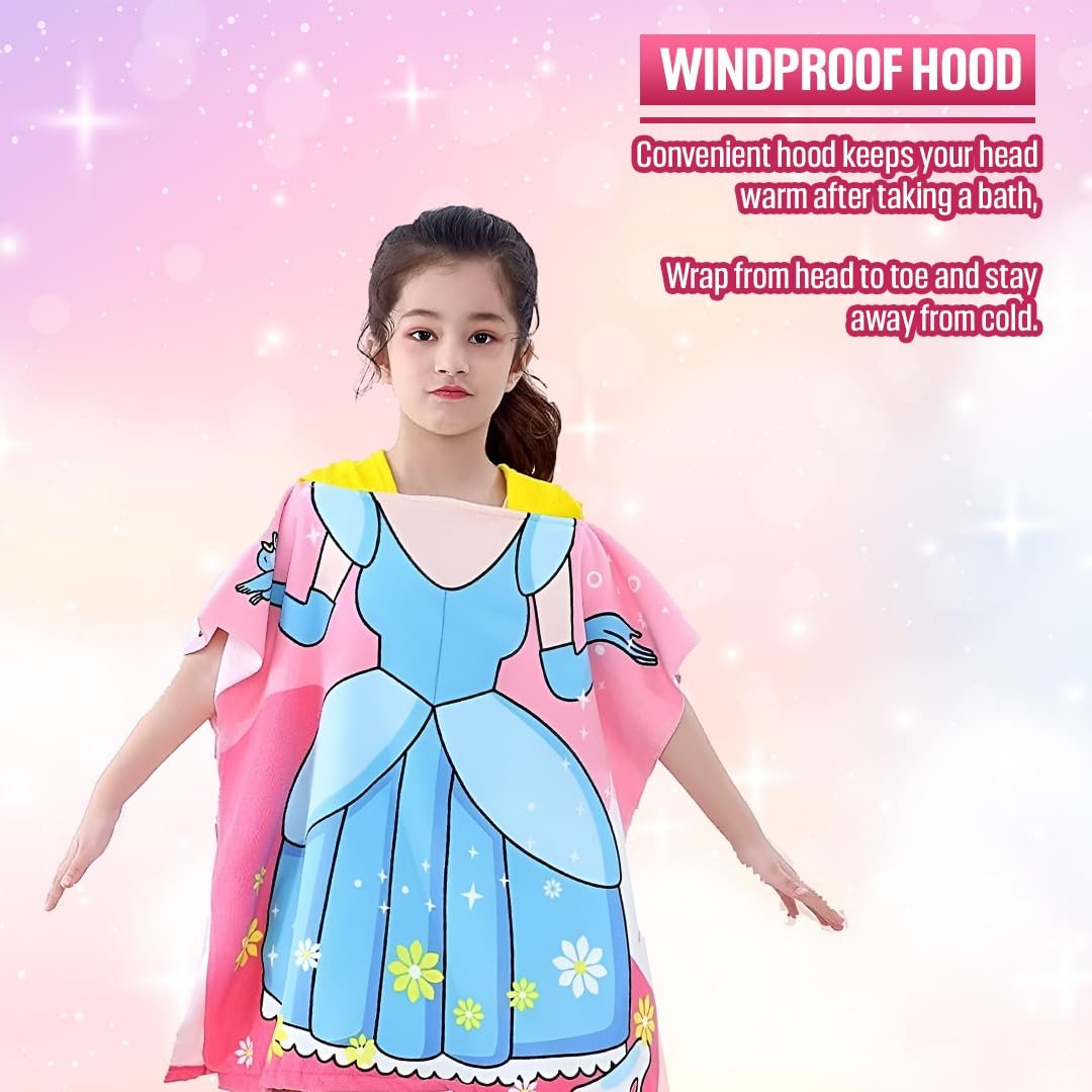 TONY STARK Poncho Towel for Kids, Beach Towel with Hoodie, 60x60cm Travel Towel for 1-7 Years Girls and Boys, Soft Microfiber Sleeved Poncho (Dream Princes)
