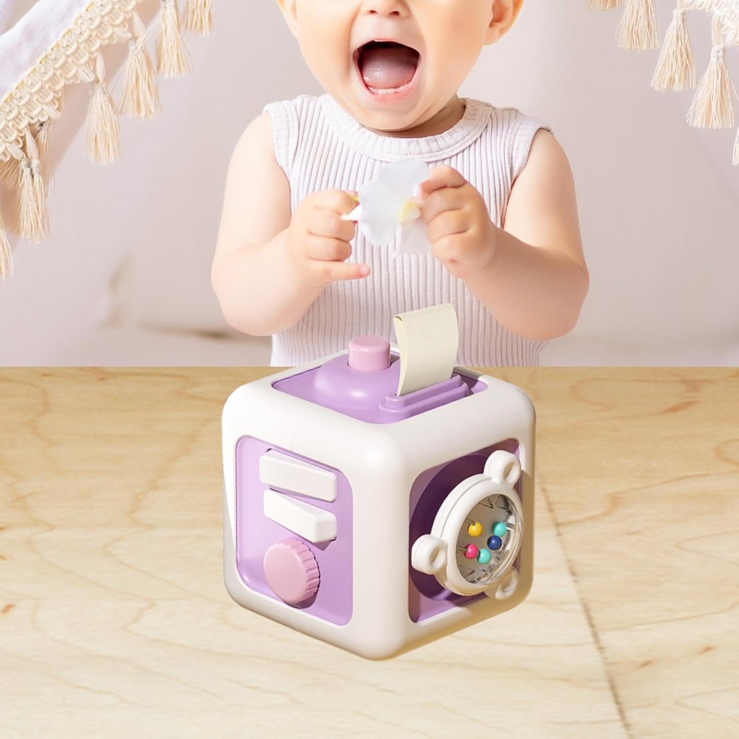 Toy Activity Cube Educational Toy Travel Sensory Toy for Toddlers 1-3 Boys Girls Purple