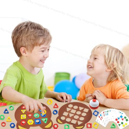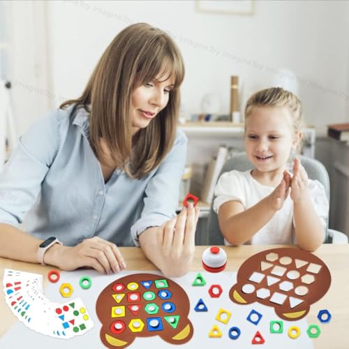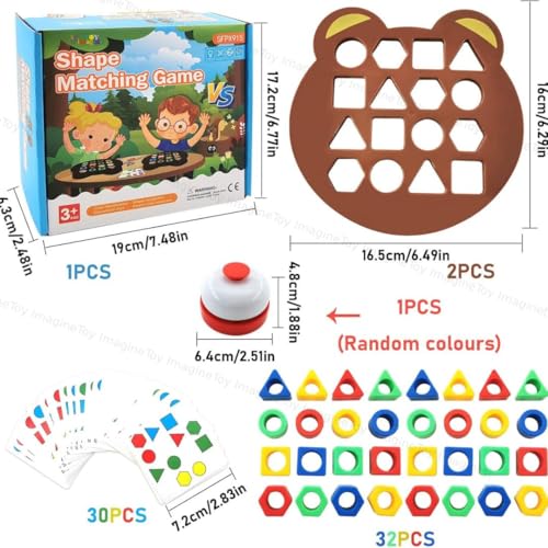 Toy Imagine Shape Matching Game for Kids | 30 Question Cards, 32 Colorful Shapes, 2 Bear Boards & Bell | Educational STEM Toy for 3+ Years | Montessori Learning Toy for Shape & Color Recognition