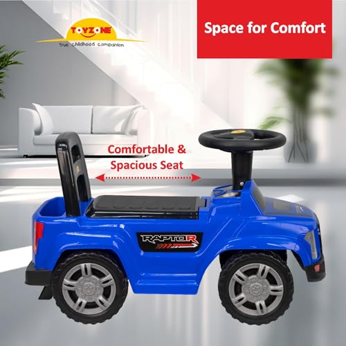 TOY ZONE Raptor Baby Ride On Car for Kids, Toddlers Push Ride Baby Kids Car with Backrest, Push Ride On Toy Jeep with Music & LED Light, Under Seat Storage, 2 to 5 Years (Blue)