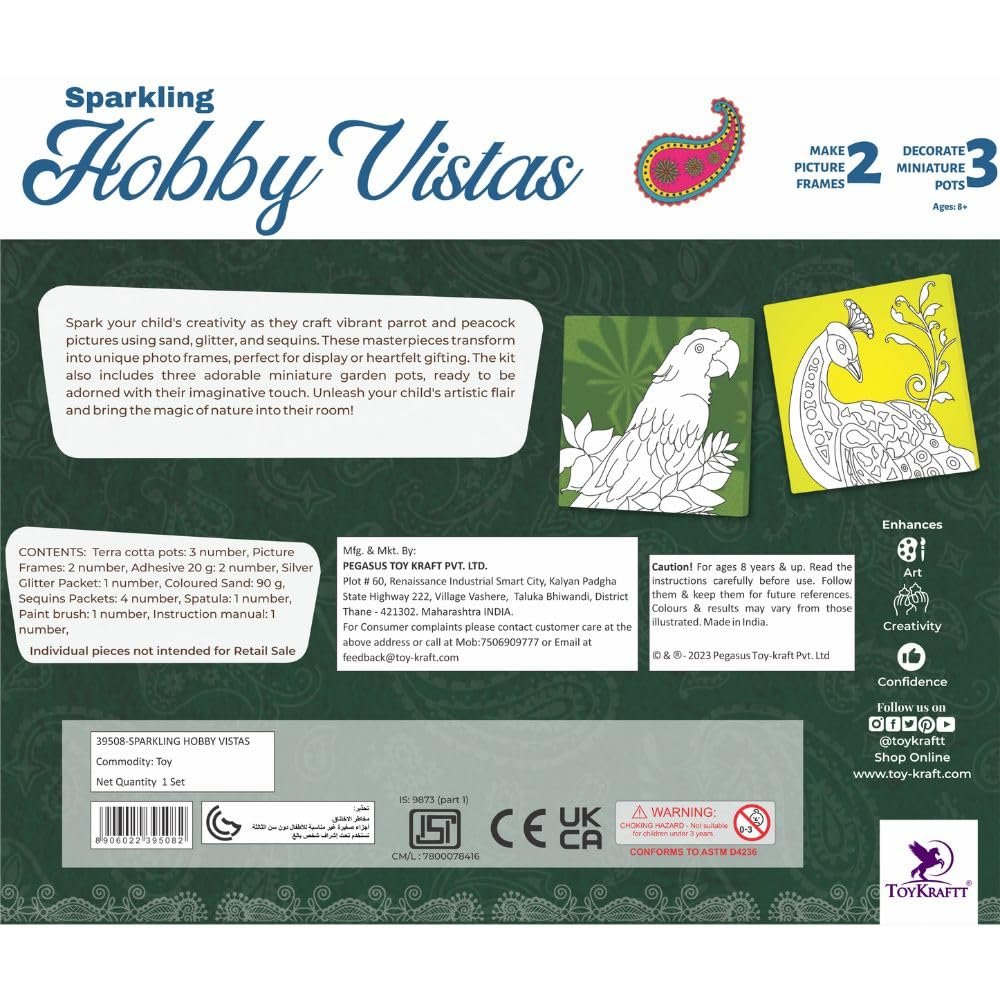 Complete Craft Kit: Includes 3 terracotta pots, 2 frames, adhesive, glitter, coloured sand, sequins, spatula, and paintbrush.