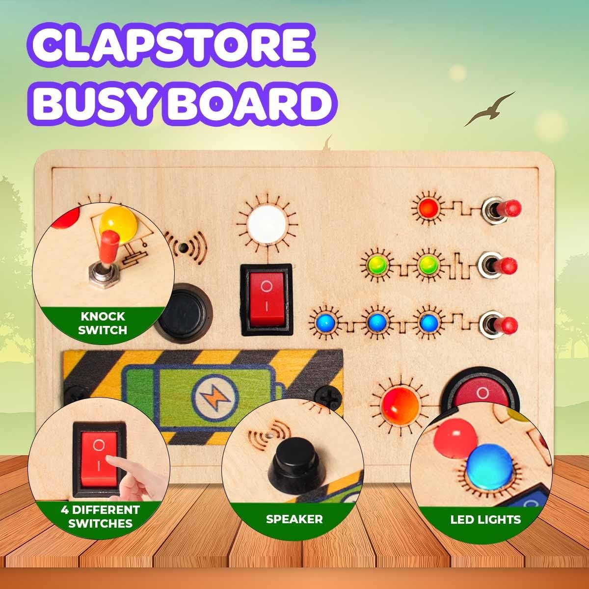 Toys Montessori Toggle Play Busy Board with LED Light, Wooden Sensory Activity Board for Toddlers & Kids 1-6 Years, Hand-Eye Coordination & Brain Development for Boys & Girls