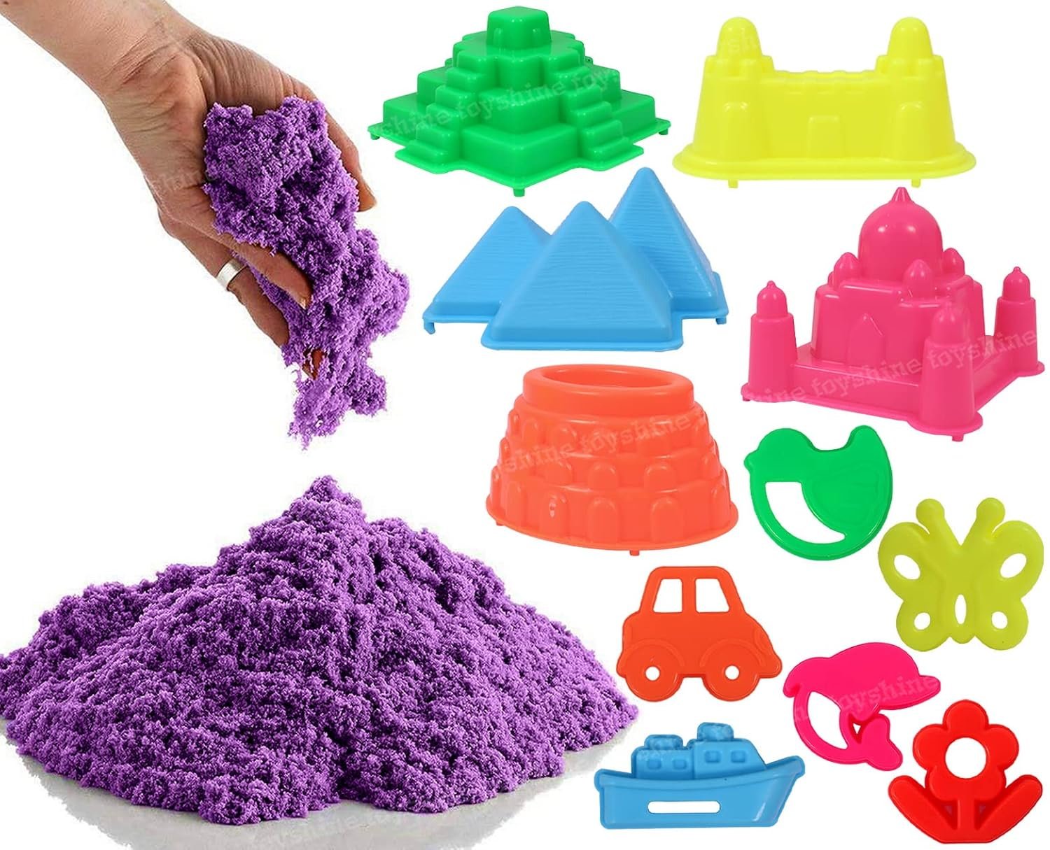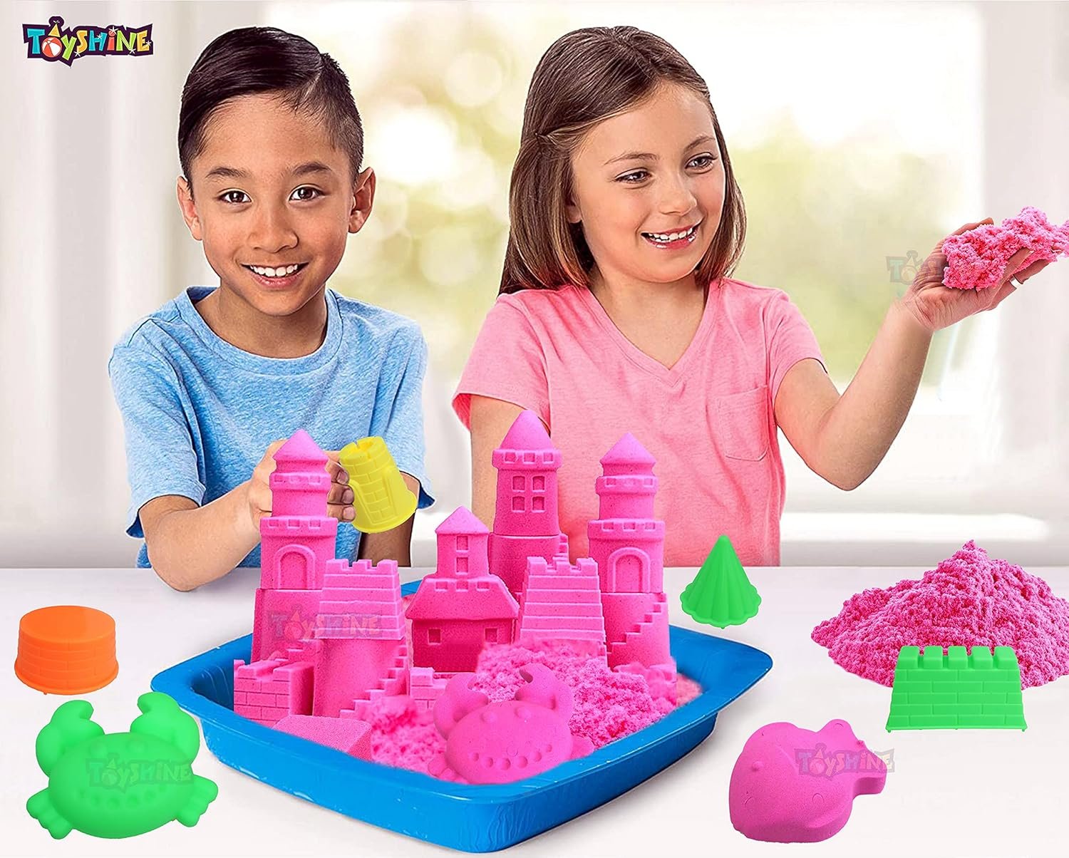 Toyshine 1 Kg Creative Sand for Kids with Free 8 pcs Castle Molds 1 Bonus Mold | Kids Activity Toy Soft Sand Clay – Pink, Clay