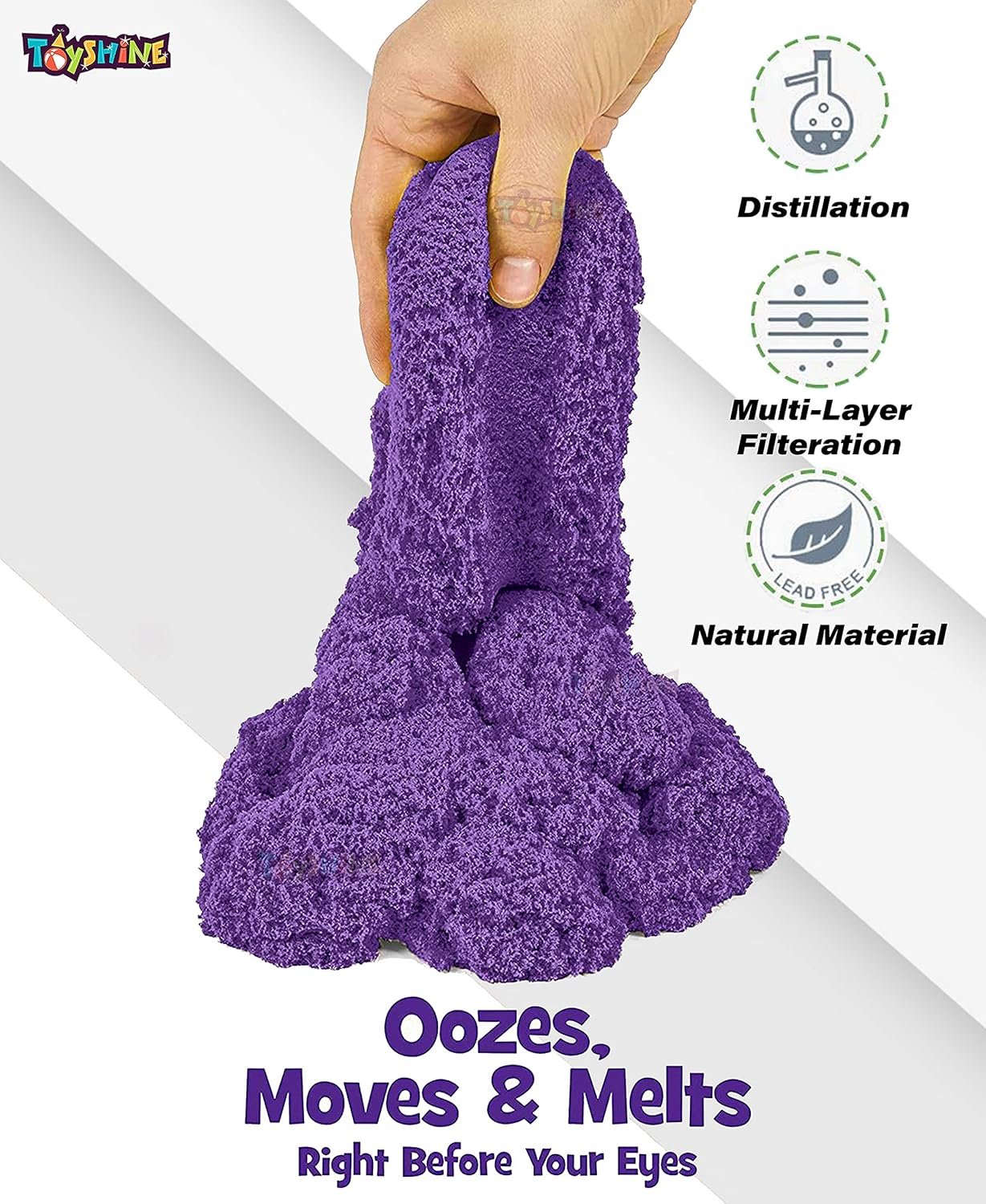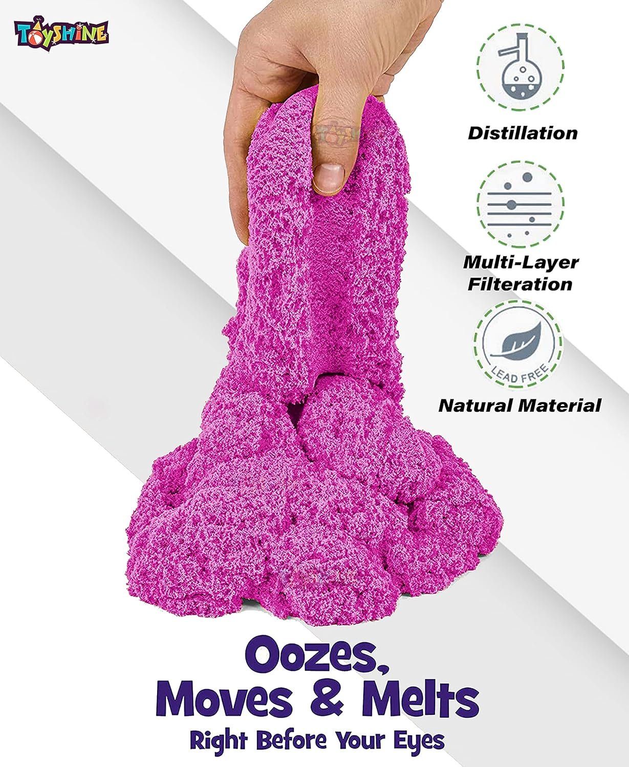 CREATE ANY SHAPE: It flows through your fingers like a slow-moving liquid but leaves your hands completely dry. Shape anything you want and use it repeatedly.