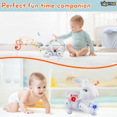 Toyshine Battery Operated Cute Interactive Walking Rabbit with Light & Sound Cuddly Electronic Pet Educational Features Toy for Kids – White