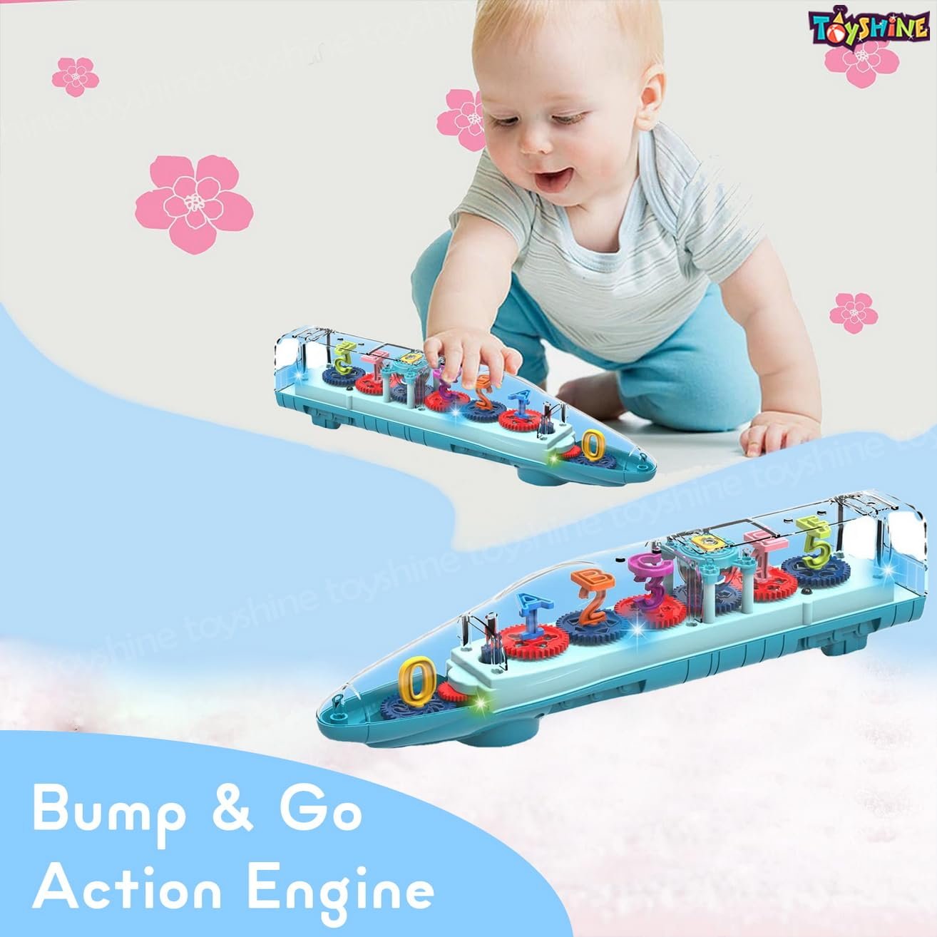 Toyshine Big Transparent Bump and Go Train with 3D Lightning, Moving Gears and Music | Birthday Toy Gift for 2-5 Year Old Boy, Girl, Baby – Numbers