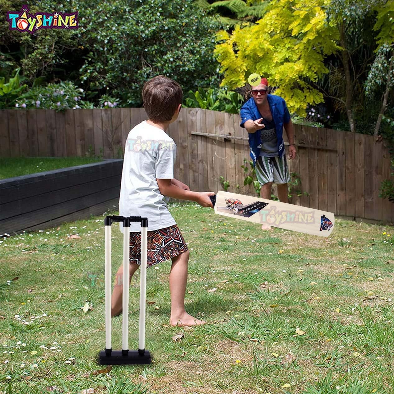 COMPLETE CRICKET SET FOR ALL: This cricket set contains 1 Wooden Bat with Size 4, 3 Polymer Stumps, 1 Plastic Base for Stumps, 2 Bails. The plastic used in making this set is very durable and does not damage easily. Being made of plastic also ensures that it is waterproof and can be used in wet conditions as well. The base of the stumps is very stable and even the bat is very sturdy which allows you to play a shot of your choice.