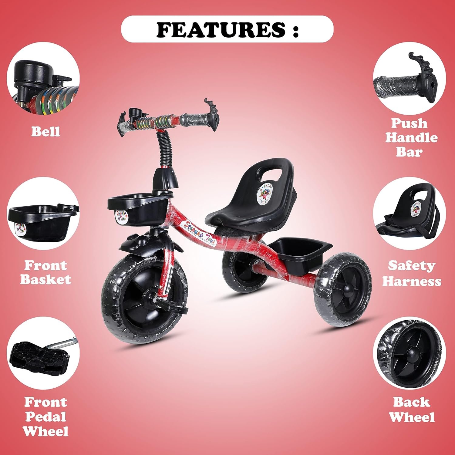 Tricycle for Kids Green Colour with Basket Baby Tricycle for Baby boy or Baby Girl Kids trikes or Toddler Tricycle for 1-4 Years Kids (Red)