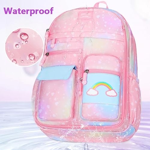 TS WITH TECHSUN School Backpack for Kids with Spine Protection, Primary Nursery Bag For Boys & Girls, Shoulder Tuition Bags For Kids Birthday Gift, Casual Backpack, 20L (Rainbow School Bag – Pink)