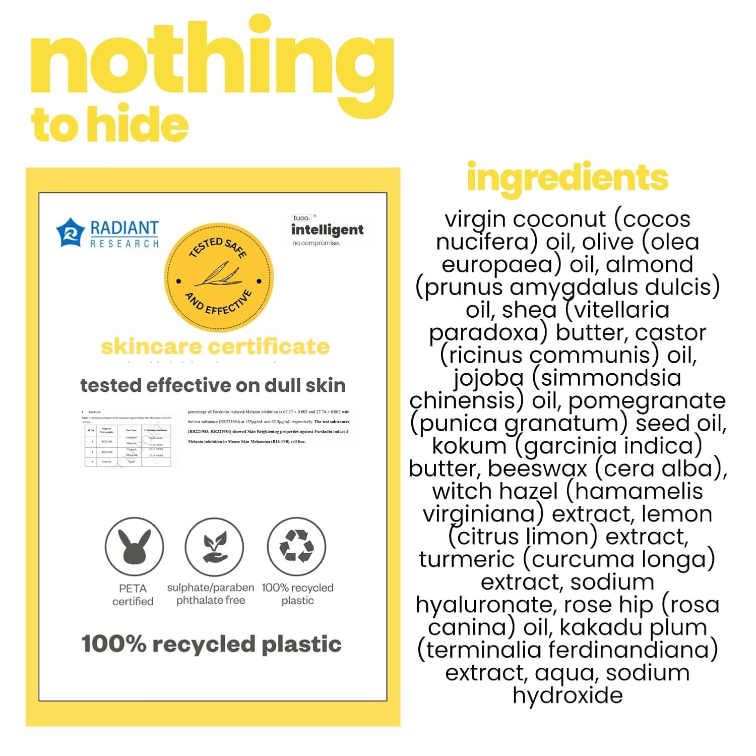 This kit brightens, soothes skin, fights inflammation, reduces blemishes, hydrates and detans – all with natural ingredients!