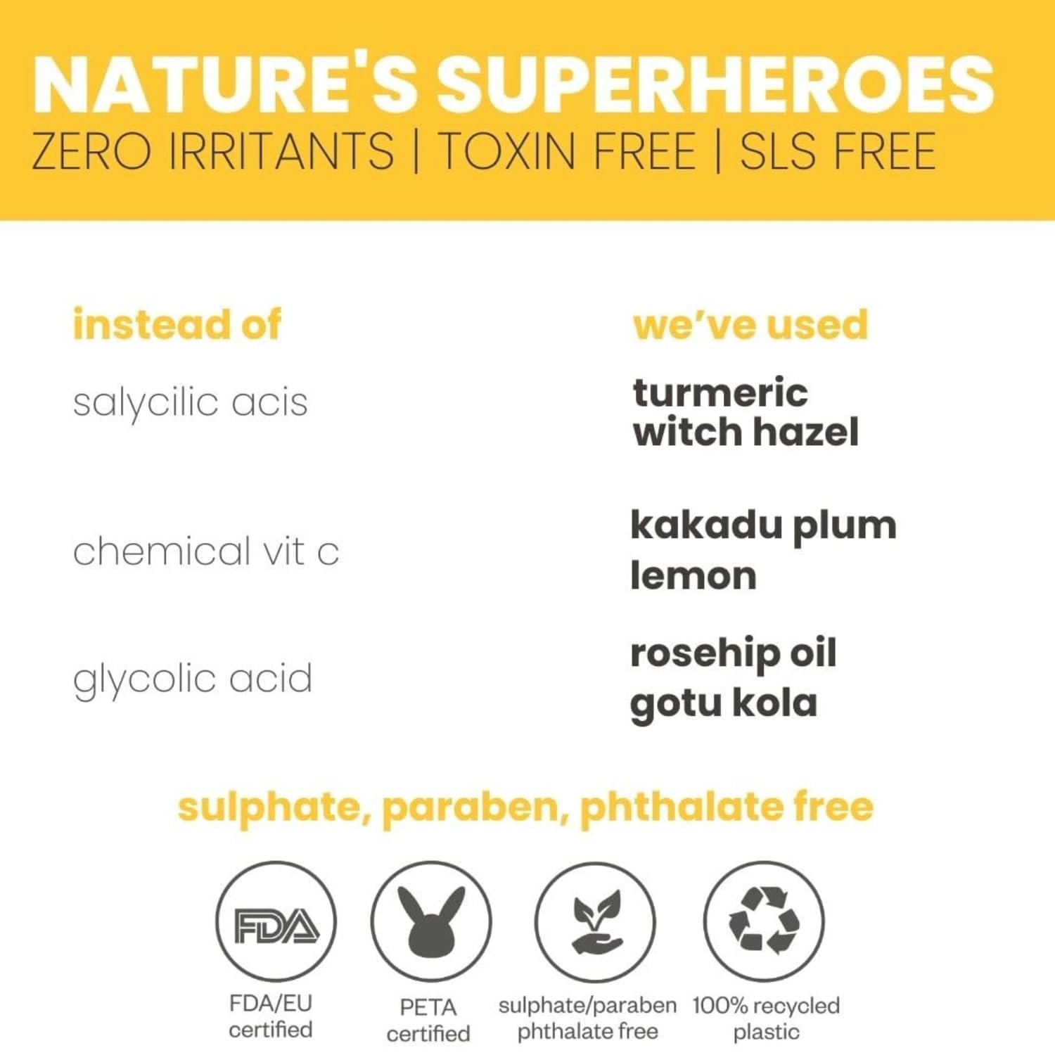 INGREDIENTS YOU CAN RECOGNIZE: Enriched with Virgin Coconut & Olive Oil for gentle cleanse, our soap nourishes and protects skin. BENEFITS: Ingredients like Shea Butter and Witch Hazel nourish, while Turmeric acts as a powerful antioxidant, treating pigmentation and strengthening skin.