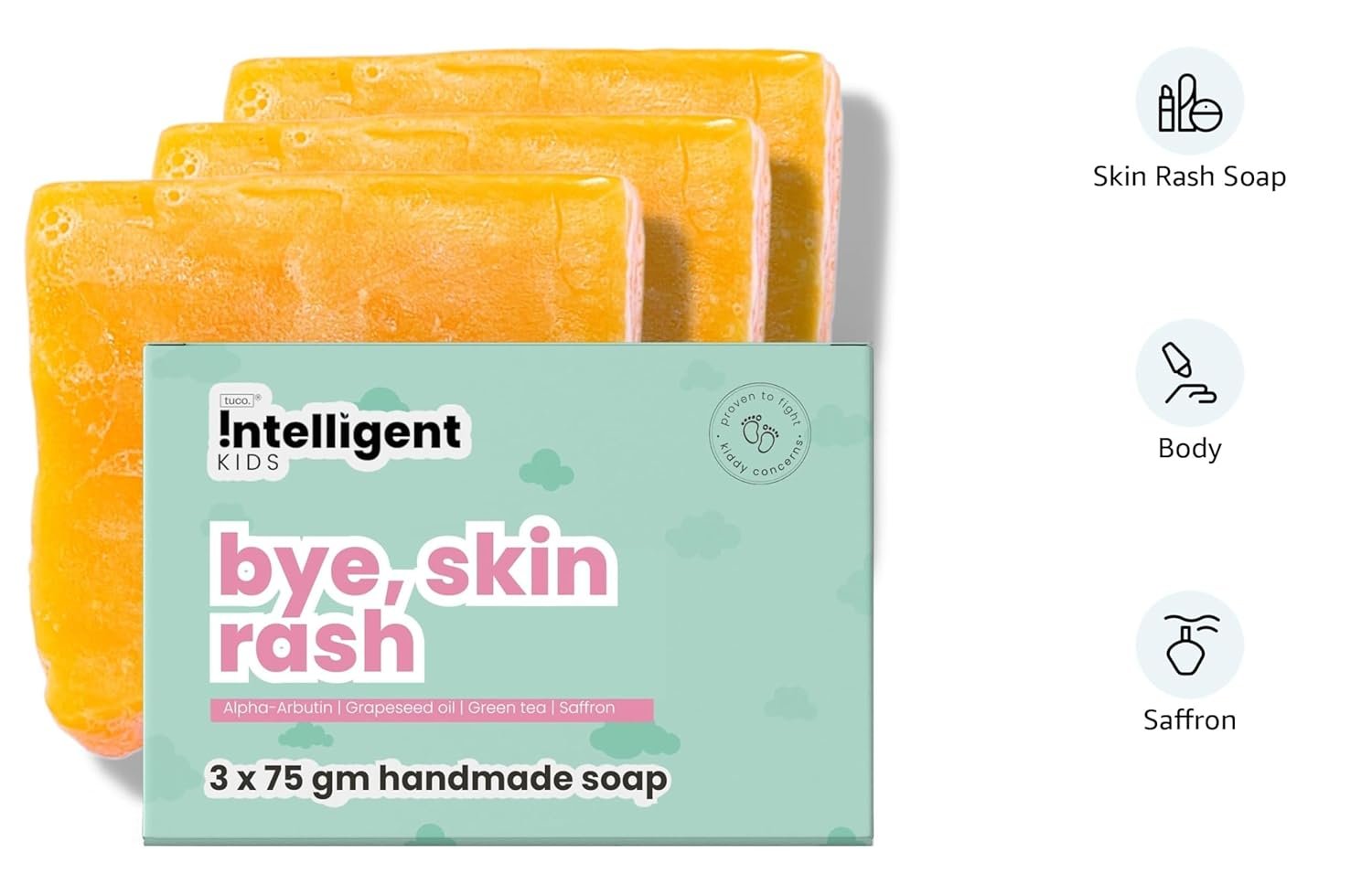 Tuco Kids Skin Rash Handmade Soap With Turmeric, Shea Butter, Olive Oil, Coconut Oil for Sensitive Skin, Everyday Use for Ages 3+ Kids, Paraben & Sulphate Free – 75 g (Pack of 3)