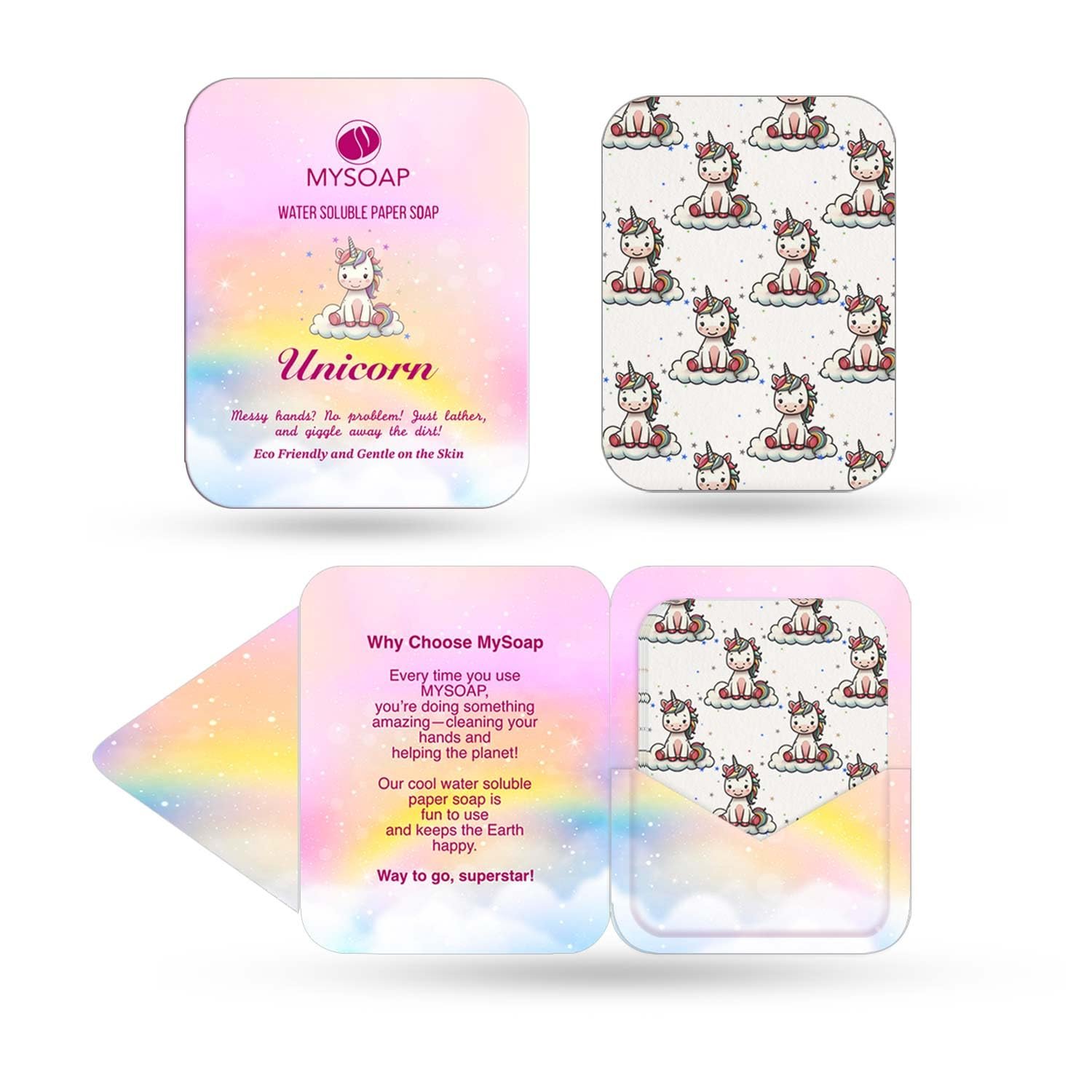 Unicorn Soap for Kids | MY SOAP | Colorful & Printed | Instant Hygiene Strips | Pack of 5 (50 Strips) – The Perfect Mess-Free Handwashing Solution?
