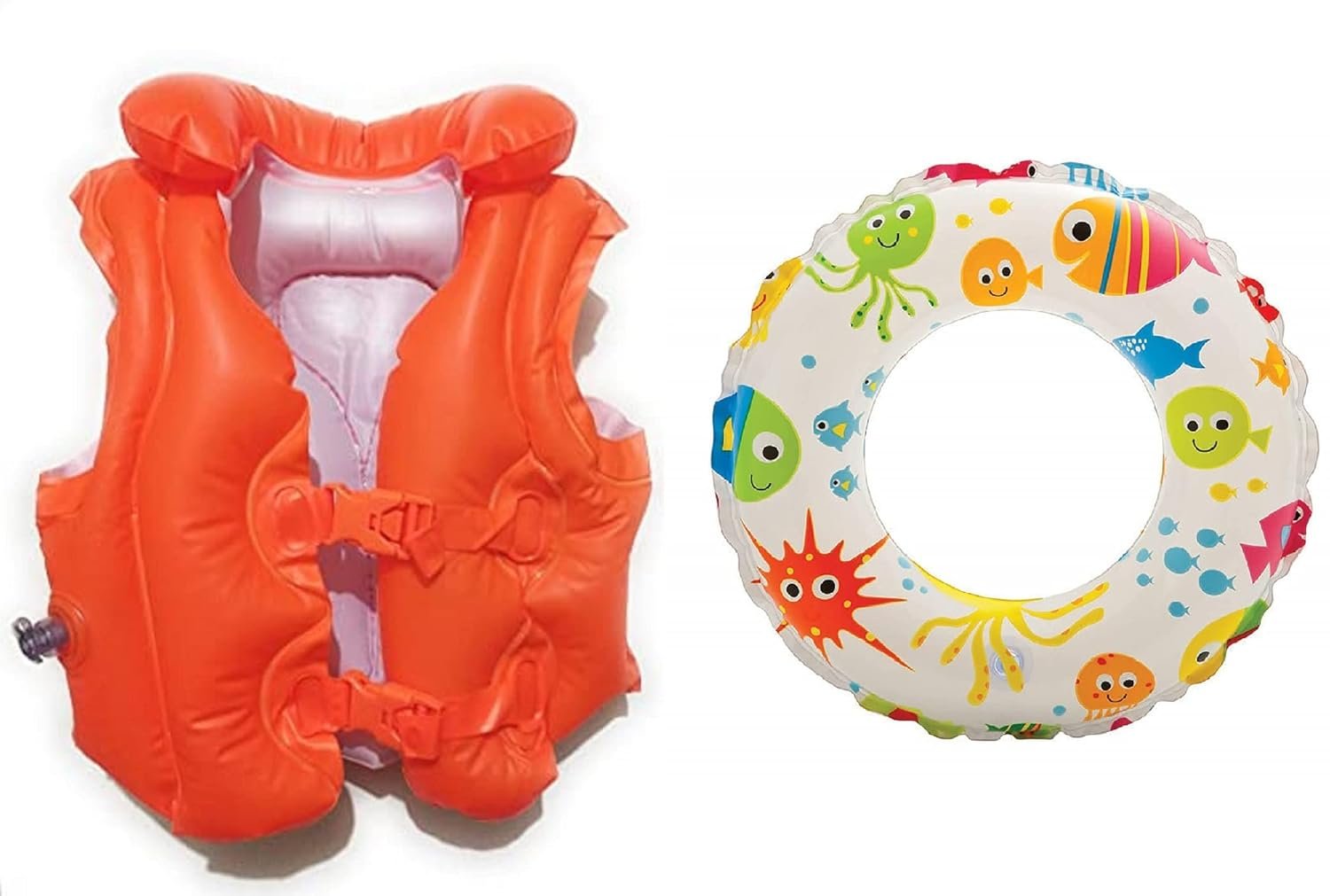Vest Safety Jacket & Swimming Ring for Girls and Boys, Kids Swim Tube(5-8Year)(Multi Color)(Combo)