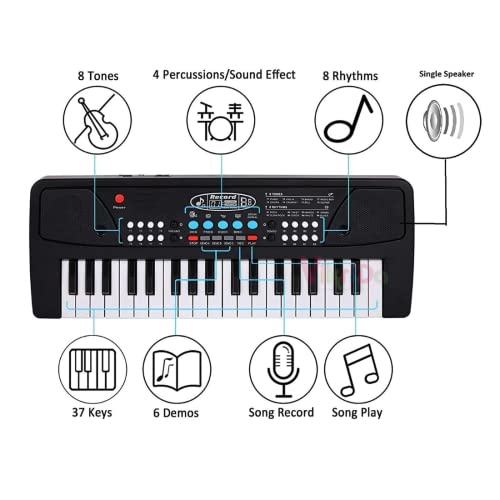 Vikrida 37 Key Piano Keyboard with Recording and Mic with Musical Guitar for Kids (37 Keys and 8 Tones, 8 Rhythms 4 Percussion) Black