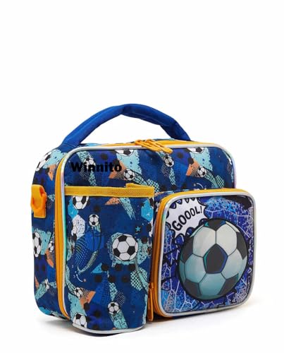 Winnito 3D Printed Polyester Lunch/Tiffin/Storage Bag for School, Travel Thermal Insulated Lunch Box with Adjustable Strap for Boys, Girls, Men, Women (Dark Blue Football)