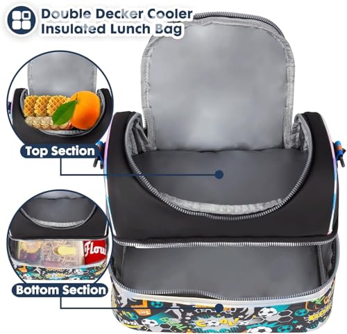 Winnito Lunch Bag Tiffin, Storage Bag for School, Travel Thermal Insulated Lunch Box with Adjustable Strap for Boys, Girls, Men, Women – Polyester (Black Football)