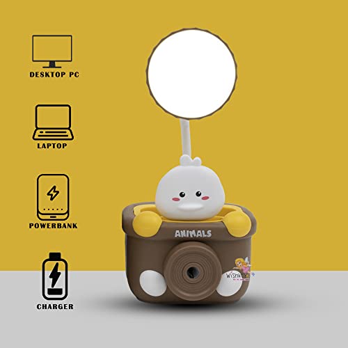 WISHKEY Plastic 3 in 1 USB Chargeable Led Light Table Night Lamp for Kids Bedroom with Pencil Sharpener & Pen Holder Stand for Girls & Boys (Multicolor)