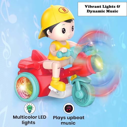 WISHKEY Stunt Tricycle Toy for Kids with 360 Degree Rotation, Battery Operated 3D Light & Musical Toy for Kids, Best Gift for Boys and Girls, Perfect for 3+Years (Pack of 1, Multicolor)